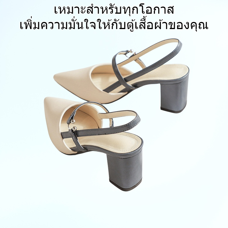 รองเท้าส้นสูงหัวแหลมดีไซน์แฟชั่น อินเทรนด์จากคนดัง สวมใส่สบาย รองเท้าแตะส้นหนากลวงด้านหลัง น้ำหนักเบา เหมาะกับทุกโอกาส เพิ่มความมั่นใจในการแต่งตัว