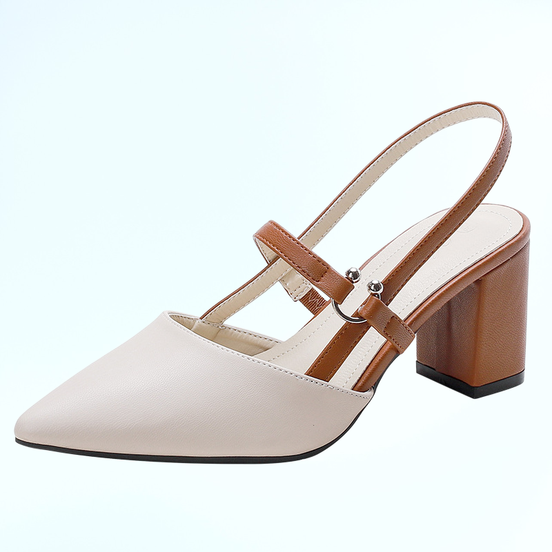 รองเท้าส้นสูงหัวแหลมแบบแฟชั่นของเหล่าคนดังทางอินเทอร์เน็ต รองเท้าแตะส้นหนาแบบกลวงด้านหลัง