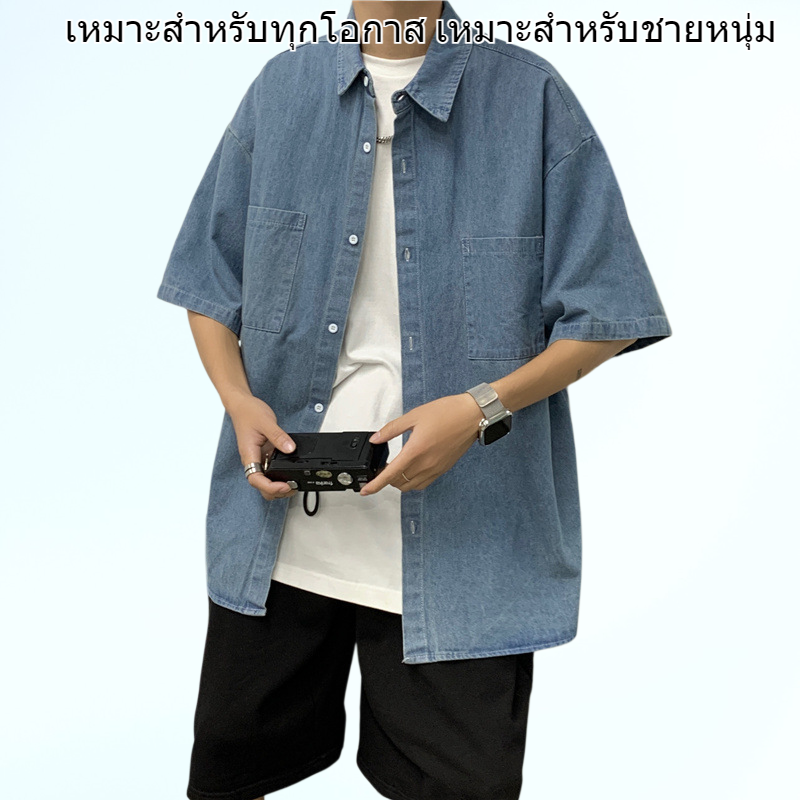 เสื้อเชิ้ตยีนส์แขนสั้นสไตล์เกาหลี ผลิตจากผ้าคุณภาพดี ระบายอากาศได้ดี เหมาะกับฤดูร้อน ออกแบบทันสมัย ใส่ได้ทุกโอกาส สำหรับวัยรุ่นชาย
